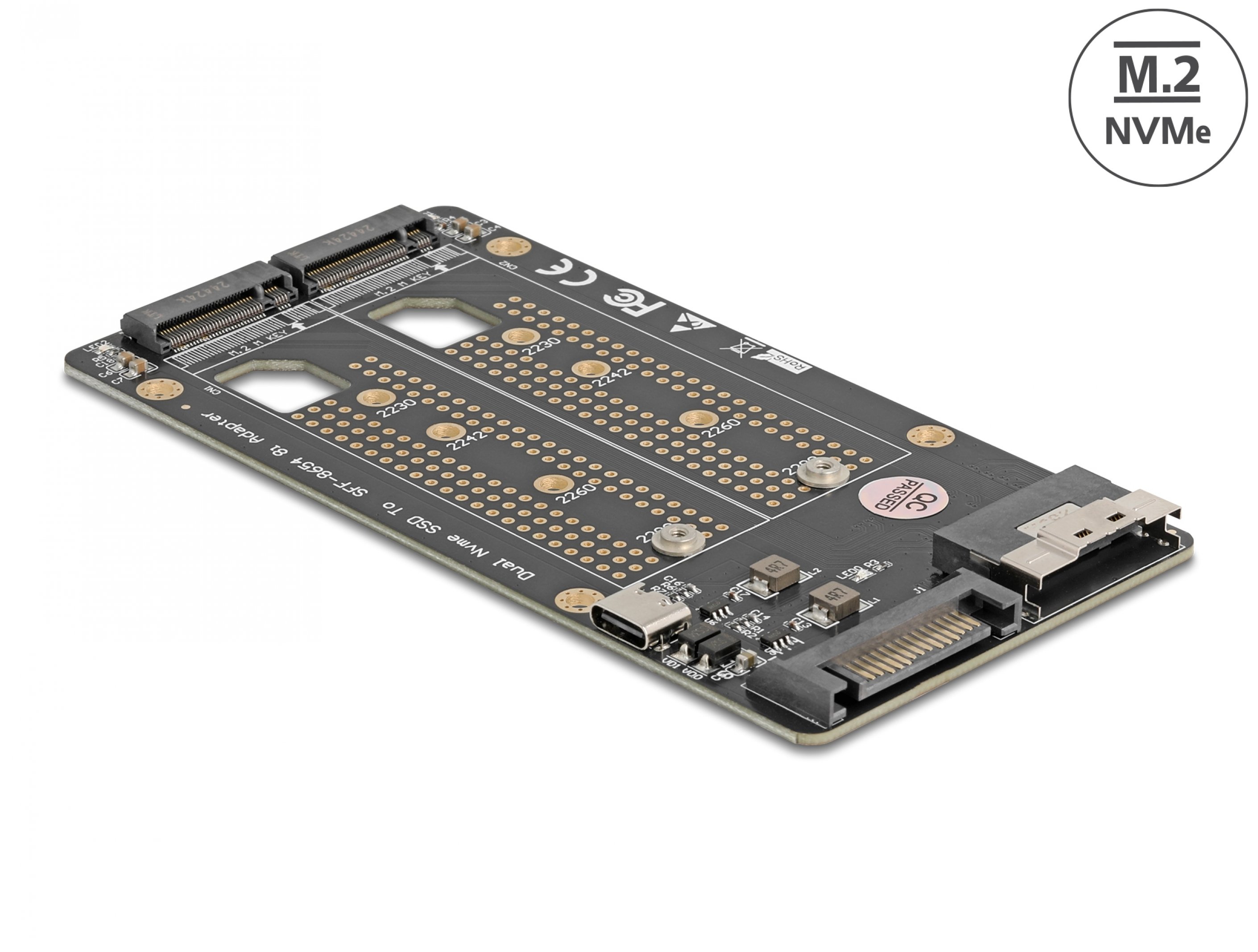 Caracteristici generale Convertor SFF-8654 8i la 2 x M.2 Key M NVMe SSD, Delock 64295