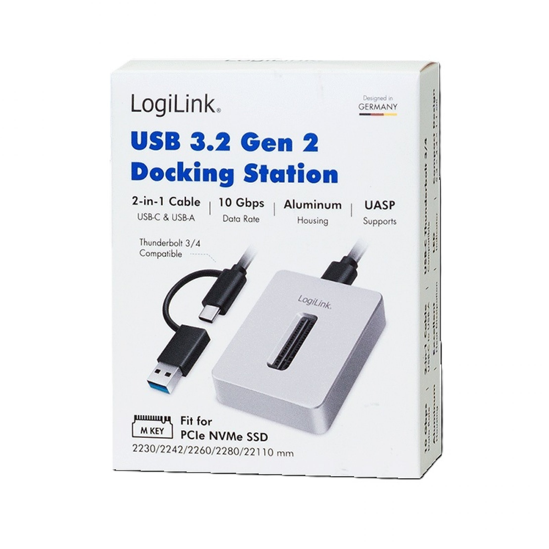 Transforma SSD-ul tau M.2 NVMe intr-un hard disk portabil extrem de rapid in cel mai scurt timp! Statia de andocare LogiLink USB 3.2 Gen 2 ofera cea mai simpla si rapida metoda de a conecta SSD-uri M.2 la computer sau smartphone. Experimenteaza viteze de transfer de date de pana la 10 Gbit/s – perfect pentru backup rapid al fisierelor, stocare sau recuperare de date. Datorita designului fara unelte si cablului flexibil 2-in-1 USB-C/USB-A, esti gata de utilizare in cateva secunde, fie pe laptop, fie pe PC. Carcasa robusta din aluminiu asigura disiparea optima a caldurii, astfel incat SSD-ul ramane rece chiar si in timpul utilizarii intensive. Plug & Play si compatibil cu toate sistemele de operare uzuale – stocarea de mare viteza nu a fost niciodata mai simpla!