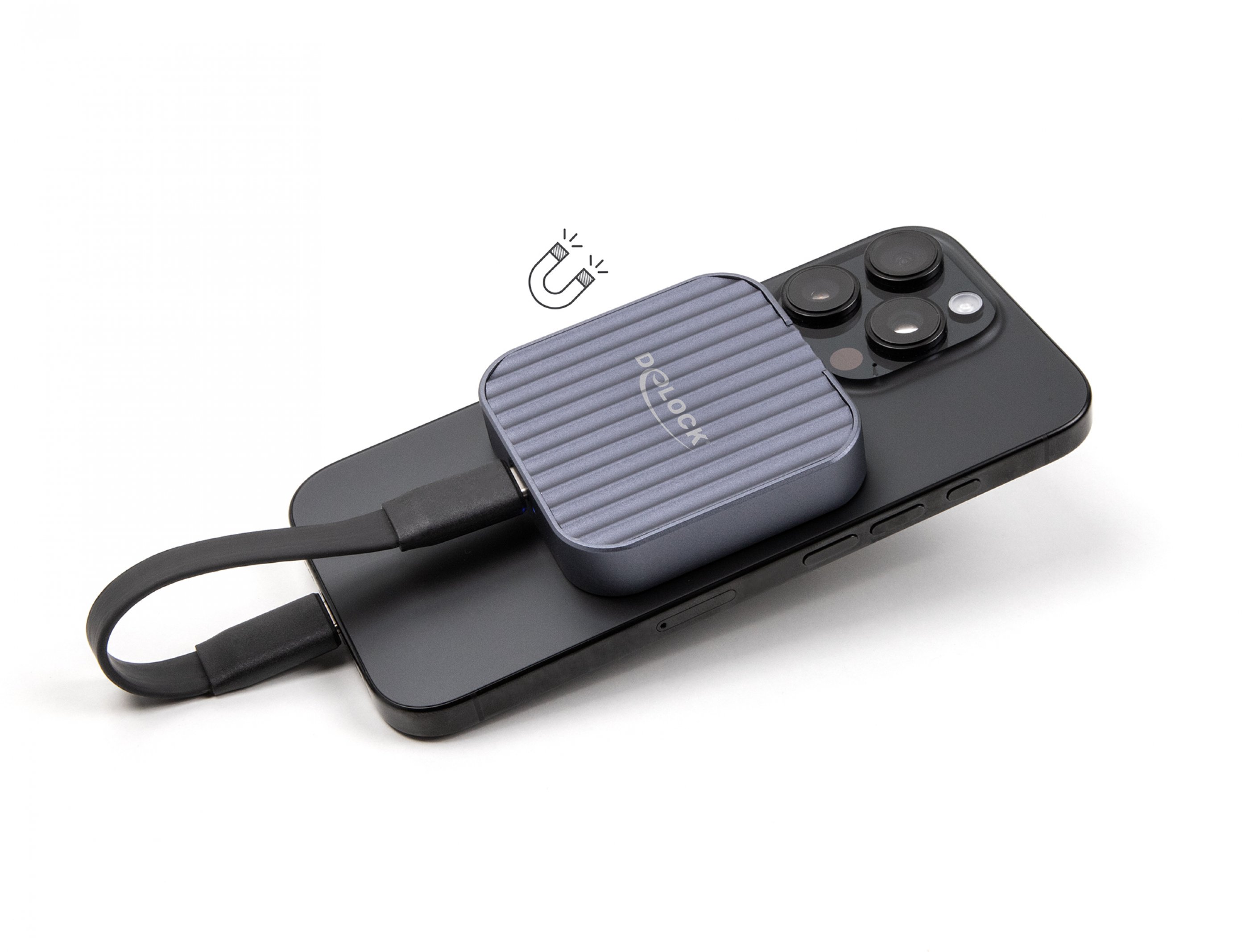 Aceasta carcasa de la Delock permite instalarea unui SSD M.2 PCIe NVMe in format 2230 si, datorita bazei sale magnetice, poate fi atasata de exemplu pe spatele unui iPhone 15. In plus, carcasa poate fi conectata la un PC sau laptop prin Thunderbolt™ 3, Thunderbolt™ 4 sau USB-C™.
