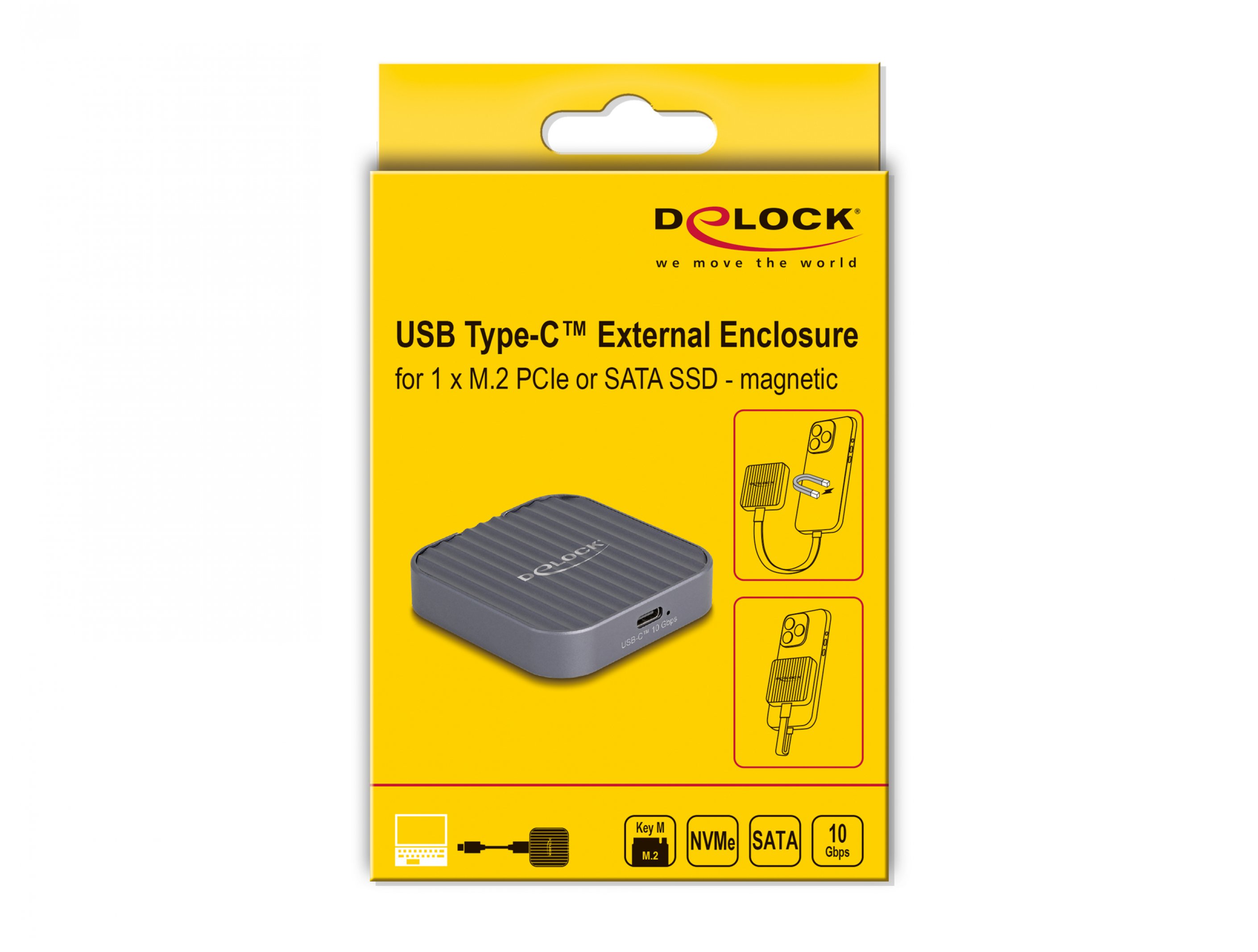 Descriere Rack extern magnetic USB Type C 10Gbps la M.2 NVMe/SATA SSD, Delock 42032