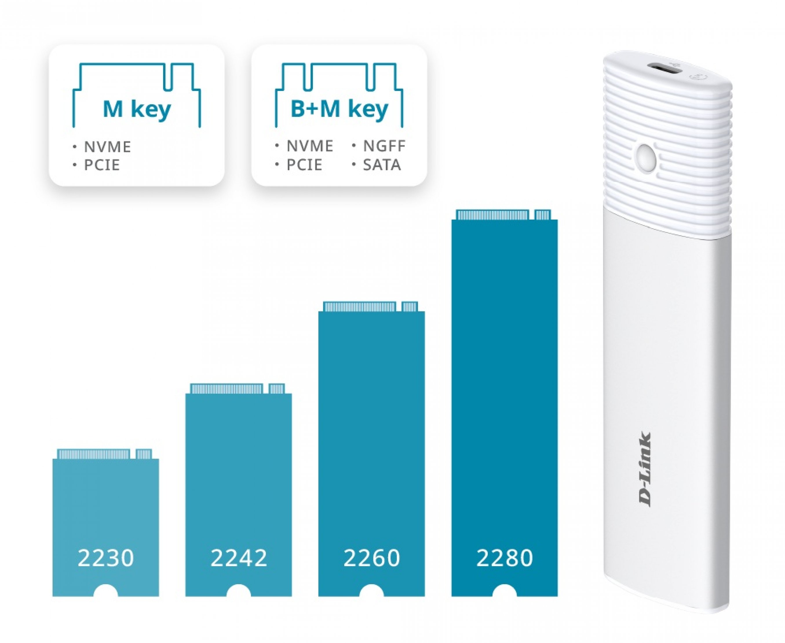 Caracteristici generale Rack extern USB-C 10 GBps la M.2 NVMe SSD Alb, D-LINK DSP-111