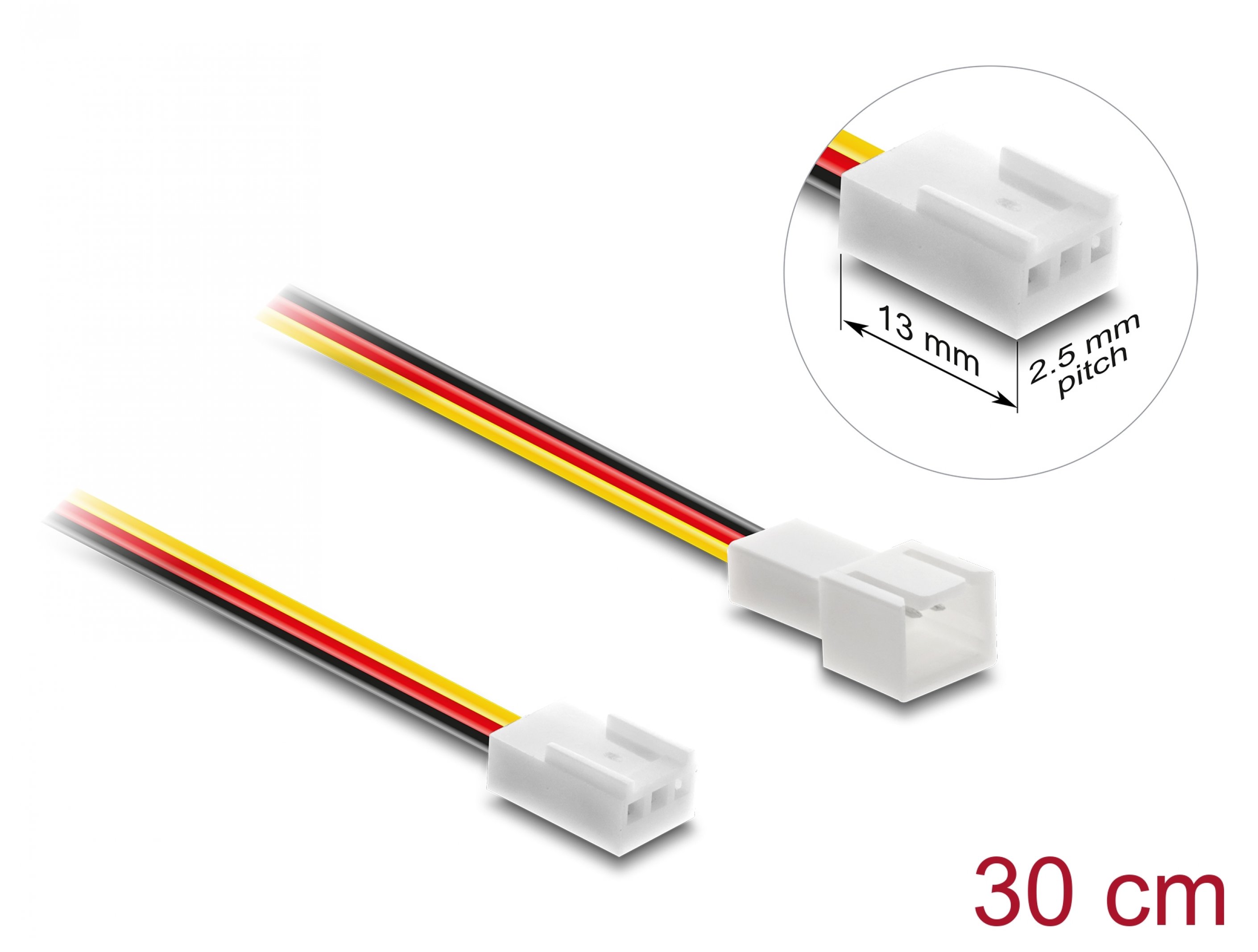 Descriere Cablu prelungitor alimentare ventilator 3 pini lungime conector/pitch 2.5mm 13mm T-M 30cm, Delock 90870