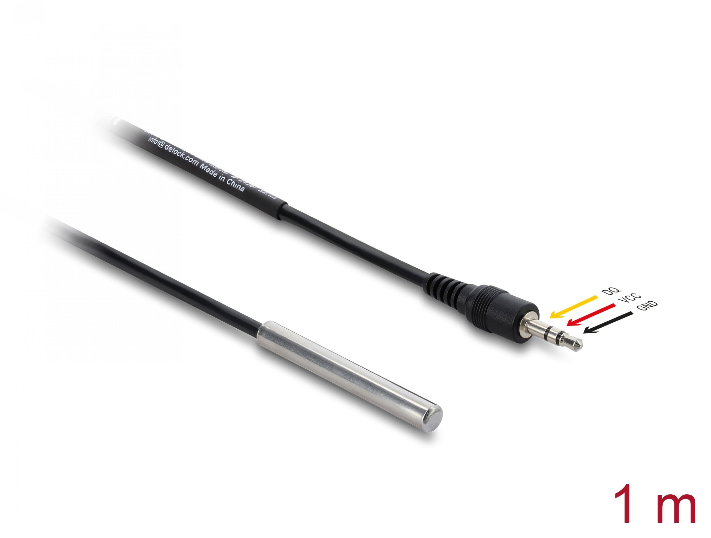 Descriere Senzor temperatura la 3.5 mm 3 pini stereo jack DS18B20 1m, Delock 91387