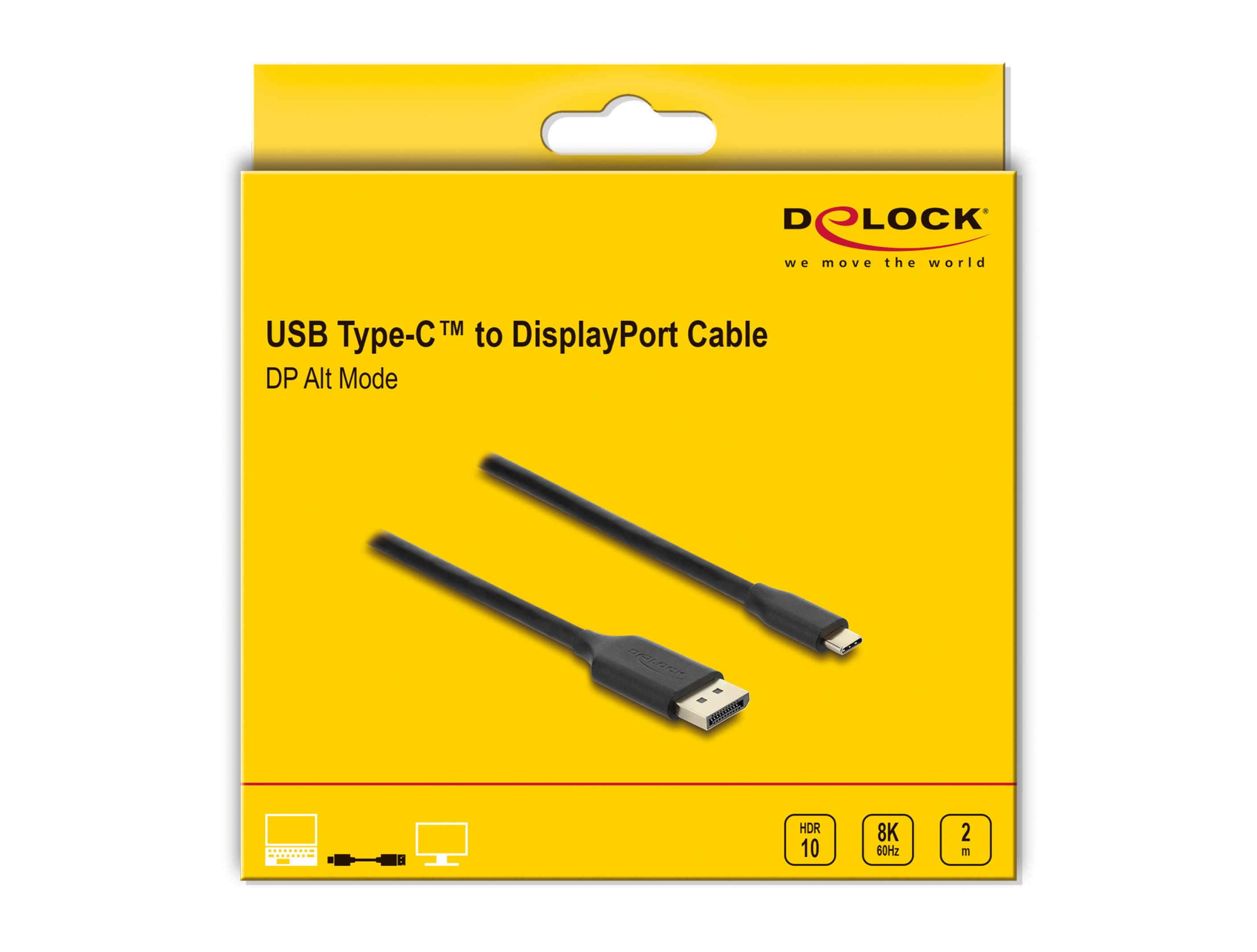 Descriere Cablu USB Type C la DisplayPort (DP Alt Mode) 8K60Hz cu HDR T-T 2m Negru, Delock 80165