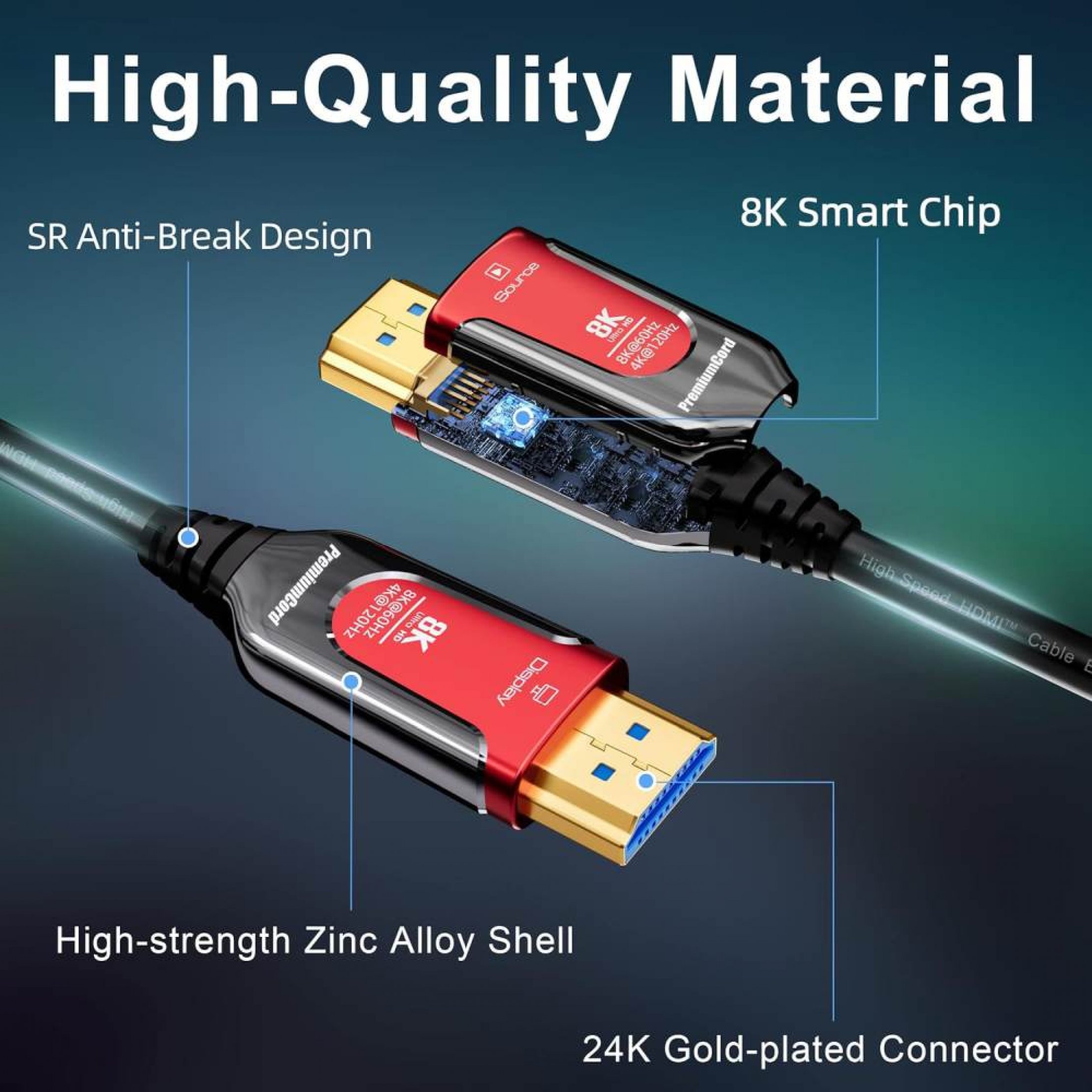 Cablu optic activ HDMI 2.1 Ultra High Speed, suporta HDMI 2.1 precum si HDMI 2.0 si HDMI 1.4