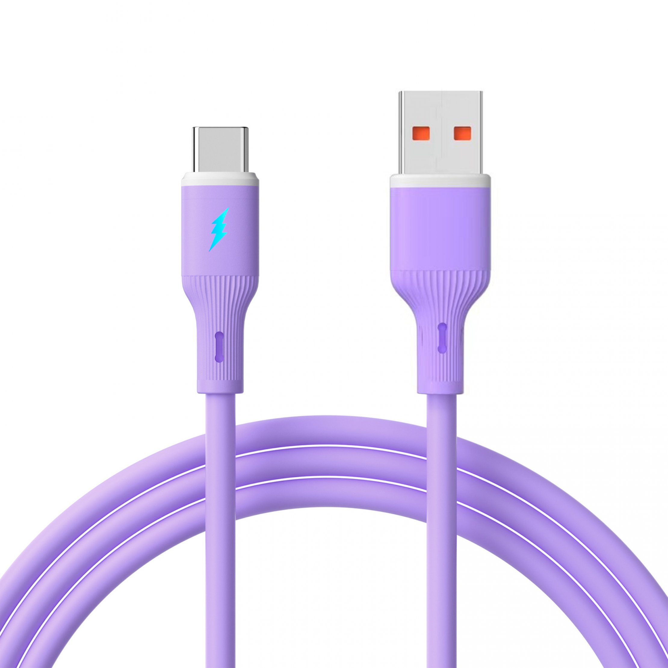 Cablul USB-C din silicon mov, cu lungimea de 1 metru, este compatibil cu standardul USB 2.0, permitand viteze de transfer de pana la 480 Mbps. Acesta permite mutarea rapida a fotografiilor, videoclipurilor sau documentelor si incarcarea smartphone-ului, tabletei sau castilor wireless fara incetiniri.