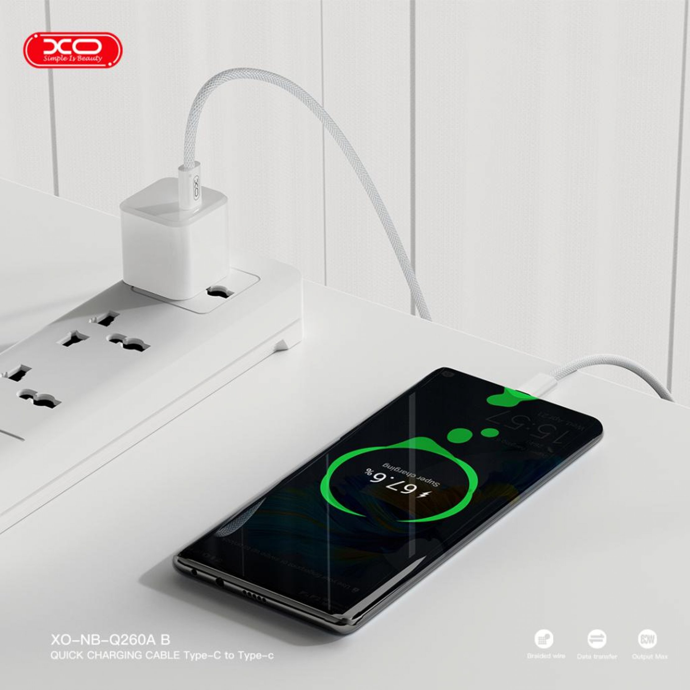 Cablu USB 2.0 type C la USB type C 60W 1.5m brodat Alb, XO NB-Q260B
