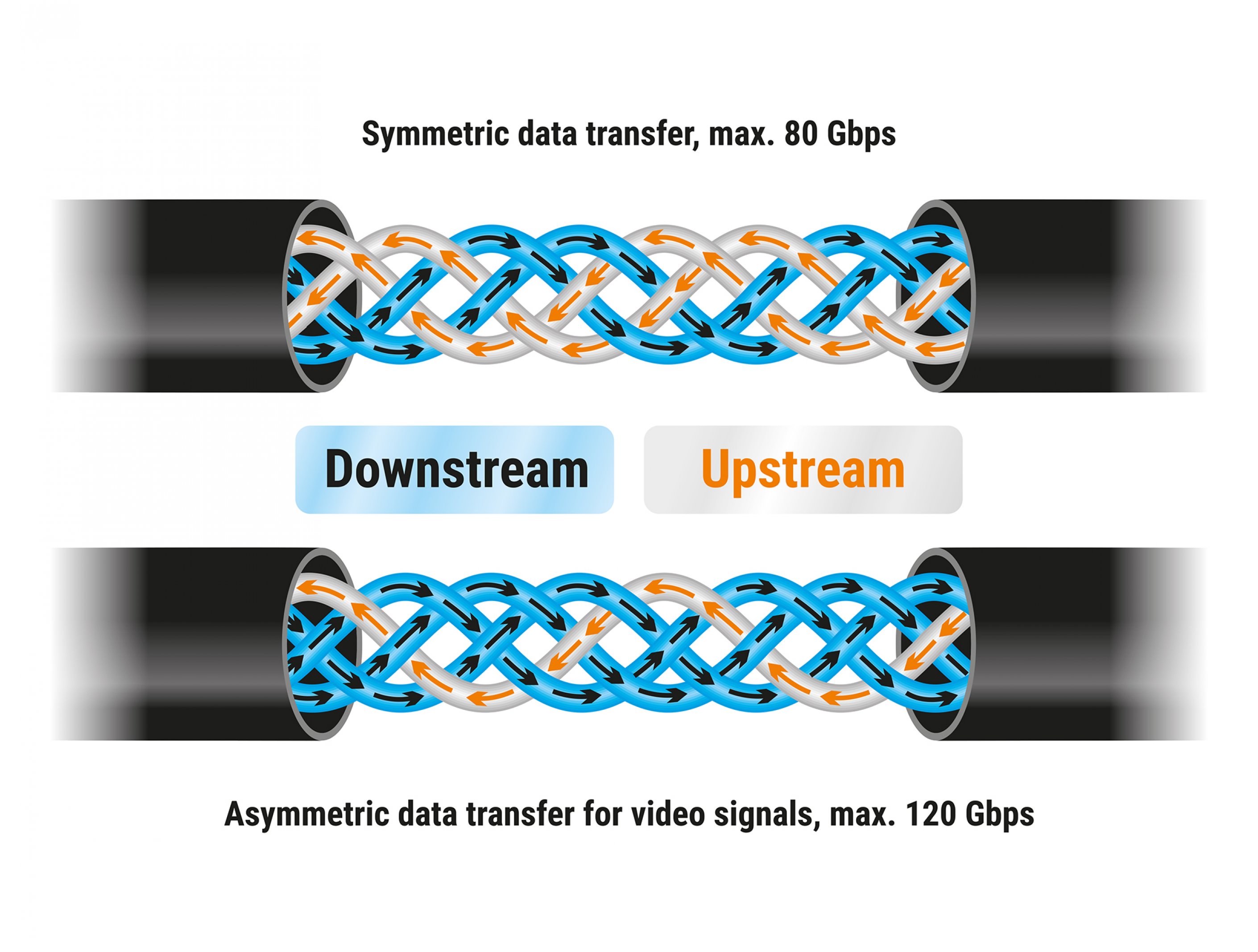 Cablul Delock suport rata de transfer asimetrica pentru semnalele video, cu viteze de pana la 120 Gbps downstream si 40 Gbps upstream. Acest lucru permite conectarea monitoarelor DisplayPort cu o rezolutie de pana la 16K 60 Hz sau 8K 120 Hz.