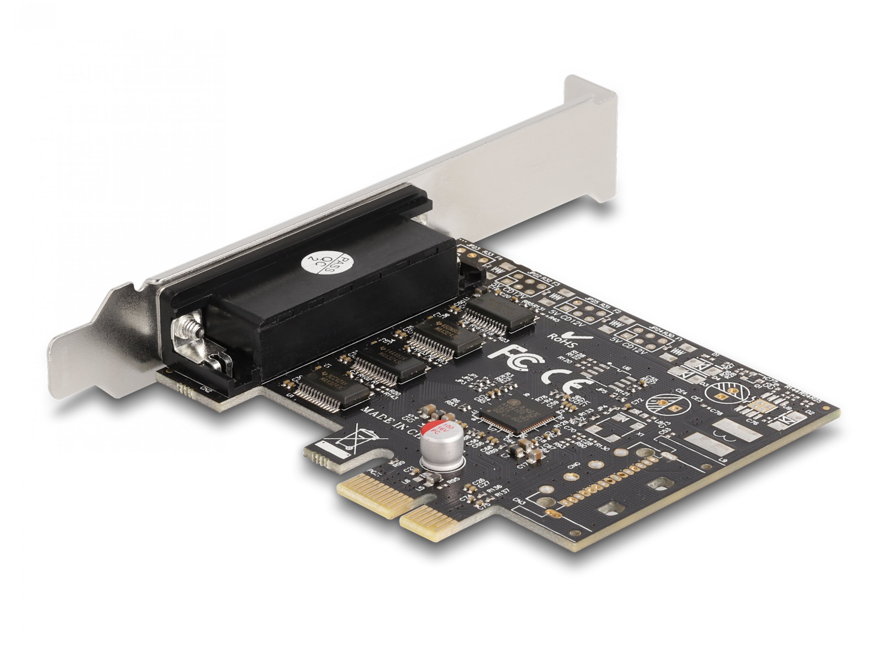 Placa PCI Express de la Delock extinde un PC cu patru porturi seriale RS-232 externe. Diferite dispozitive precum scanner, convertor de protocol, dispozitive IoT etc. pot fi conectate la aceasta placa.