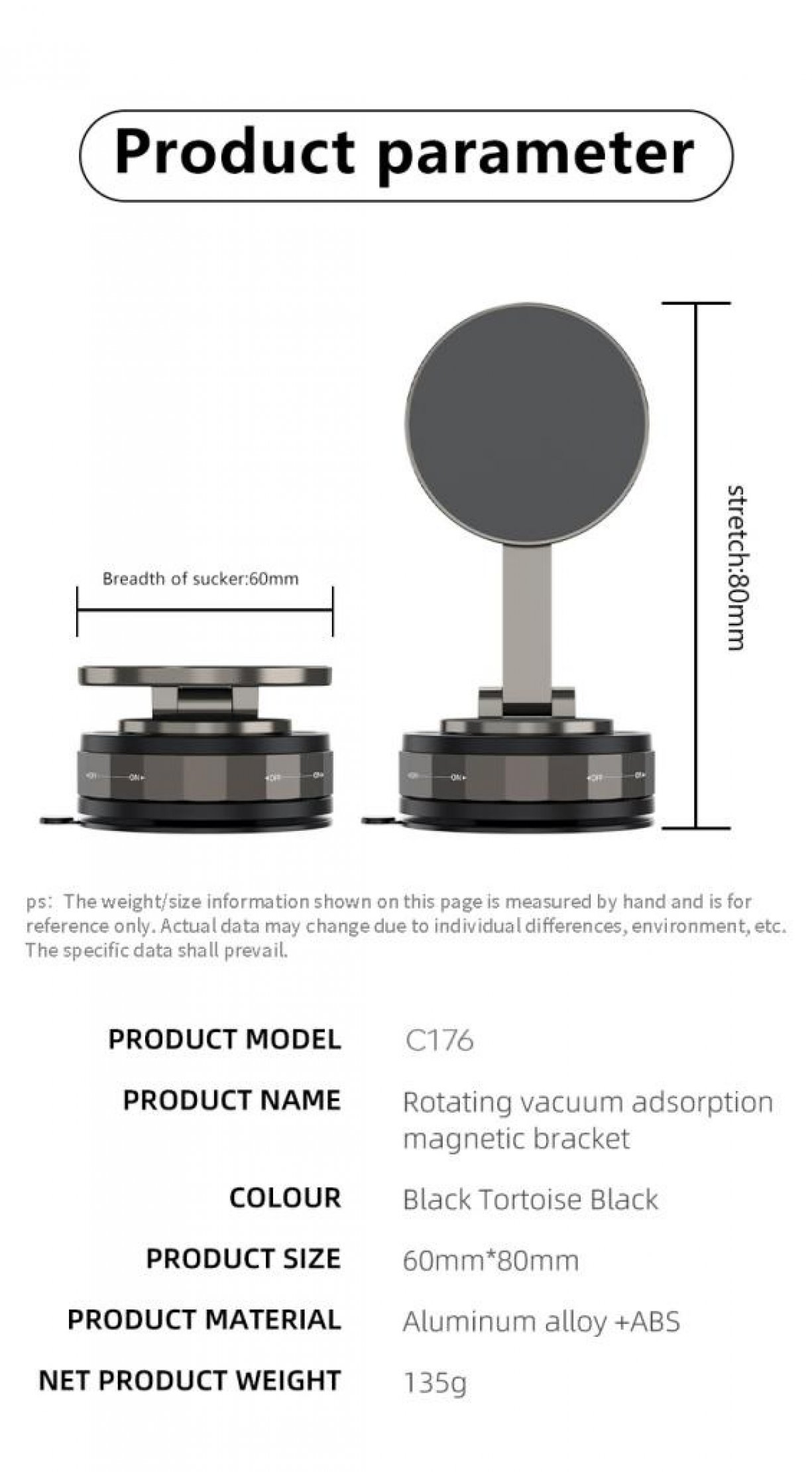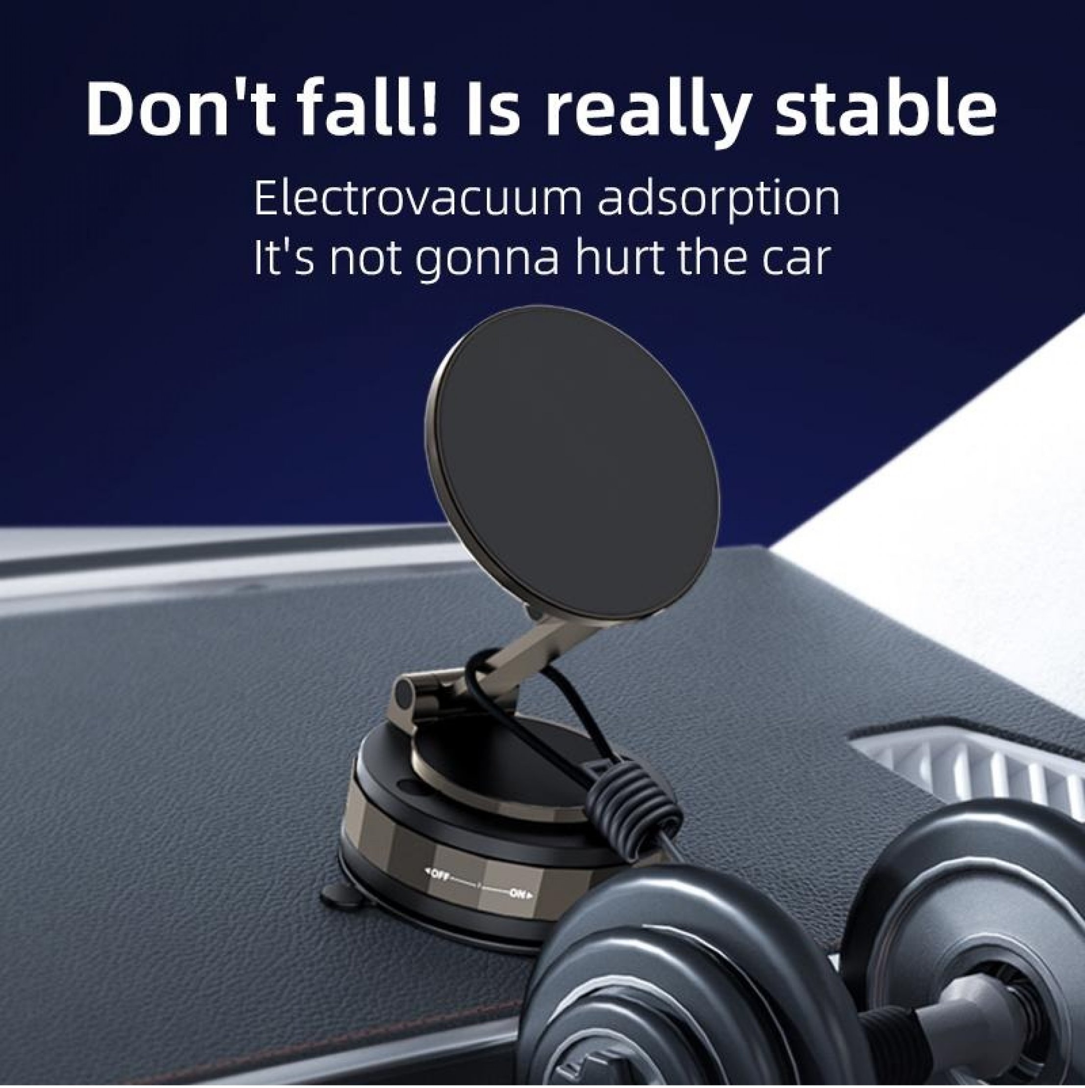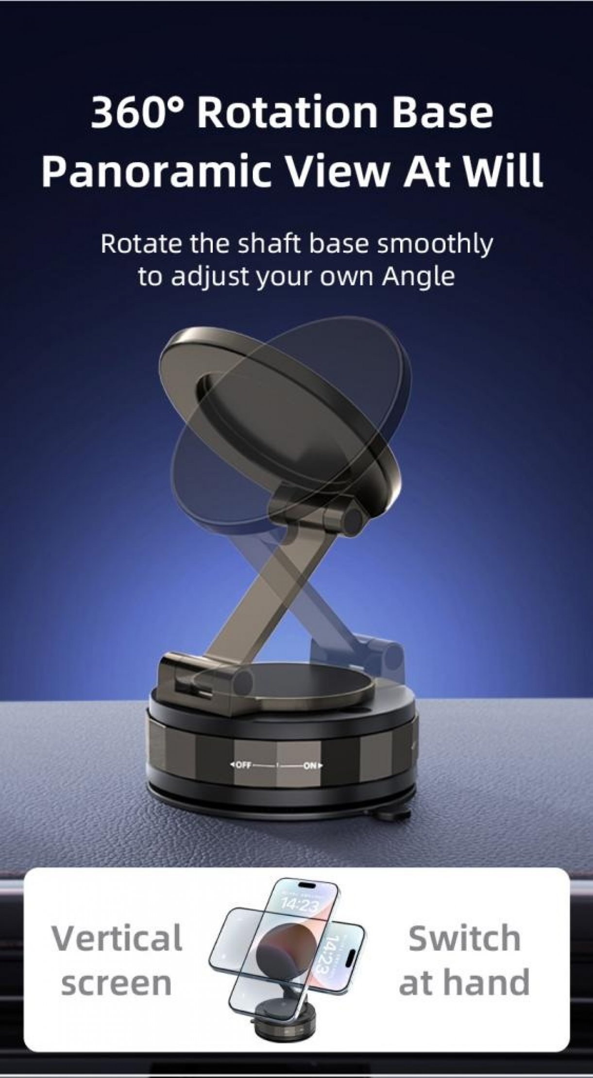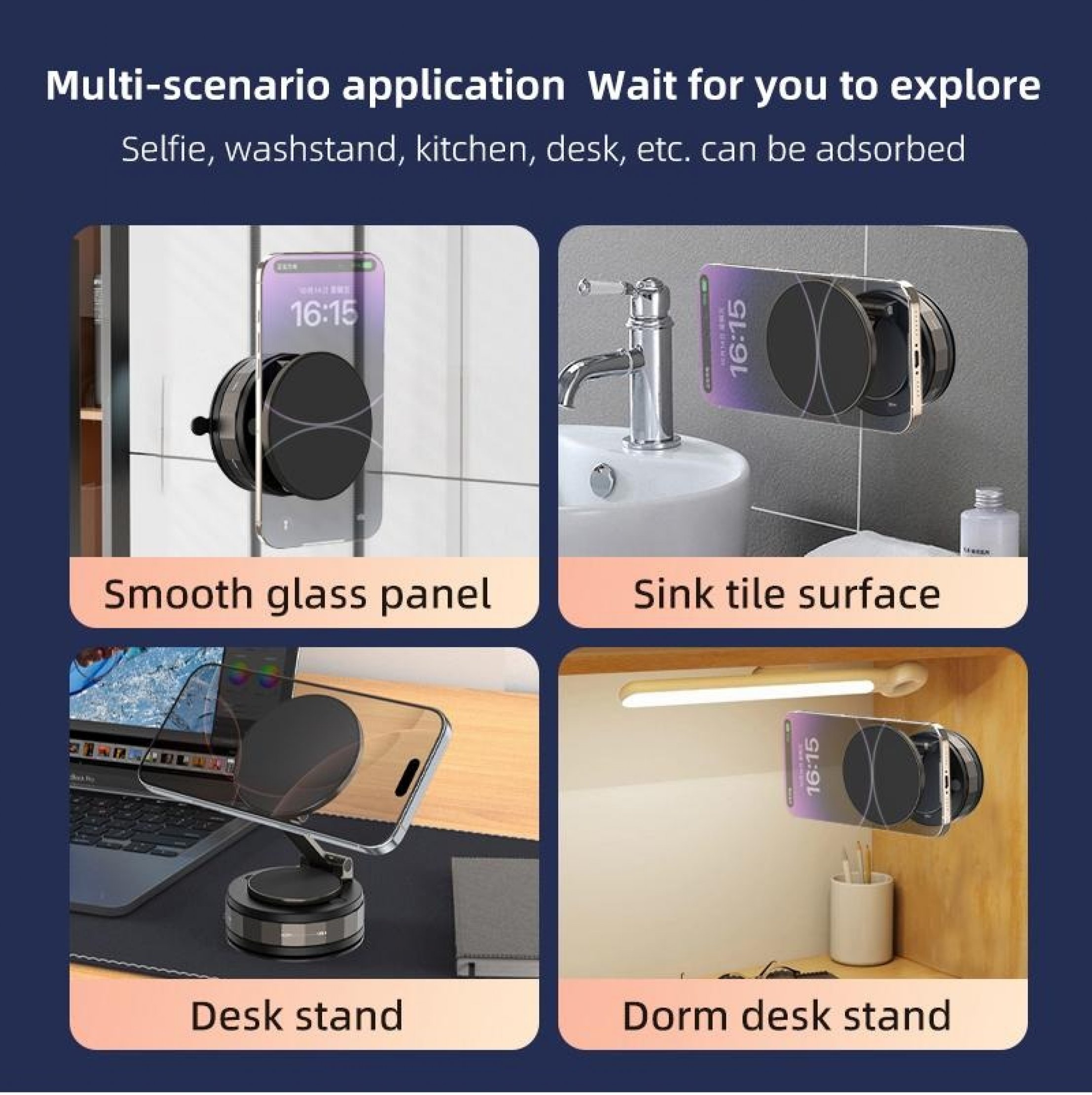 Suportul pentru telefon mobil vacuum-magnetic foloseste un mecanism de blocare glisant care poate fi instalat si indepartat usor de pe diferite suprafete.