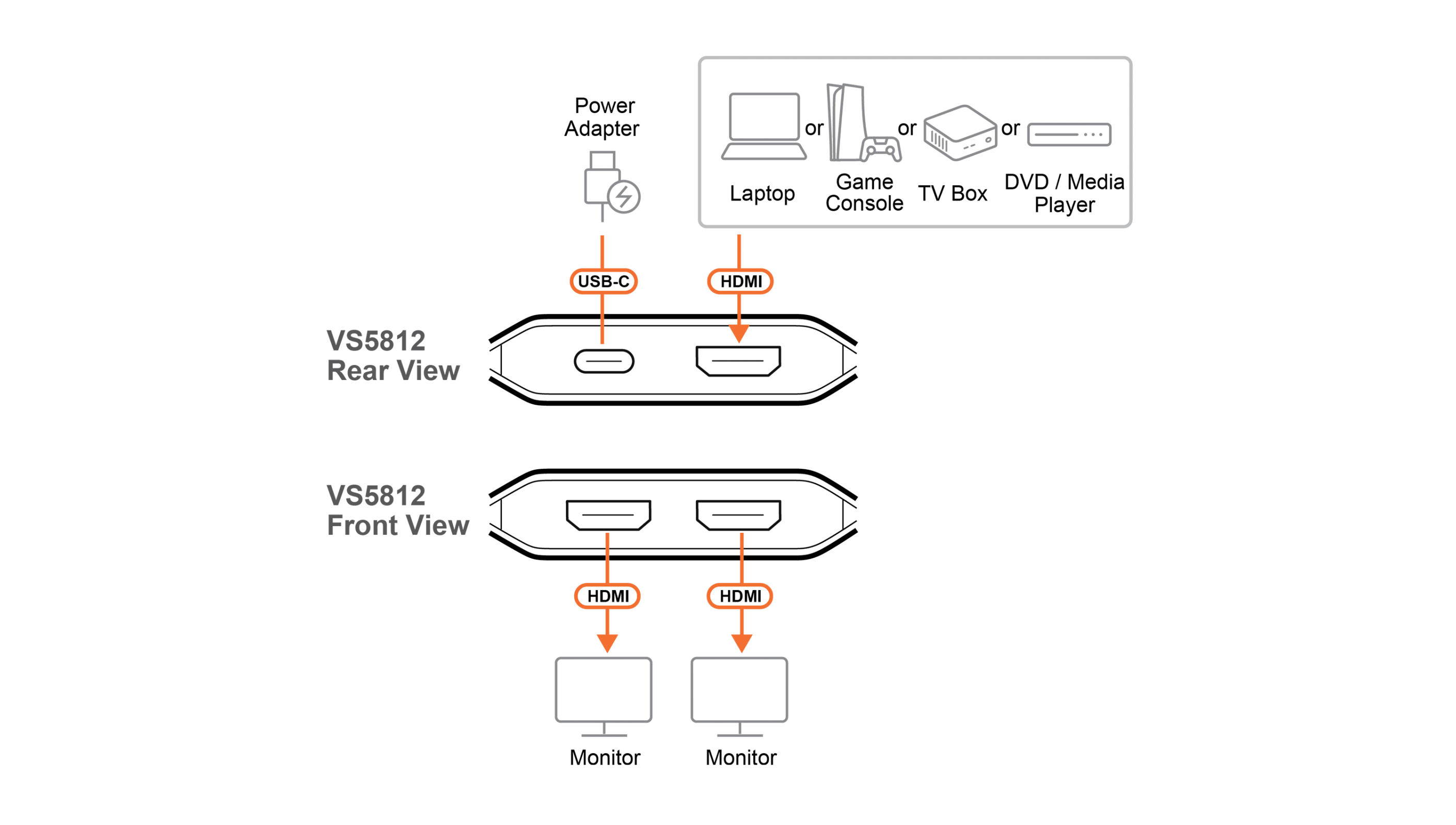 Descriere Switch HDMI 8K60Hz/4K120Hz 2 porturi alimentare USB-C, ATEN VS5821