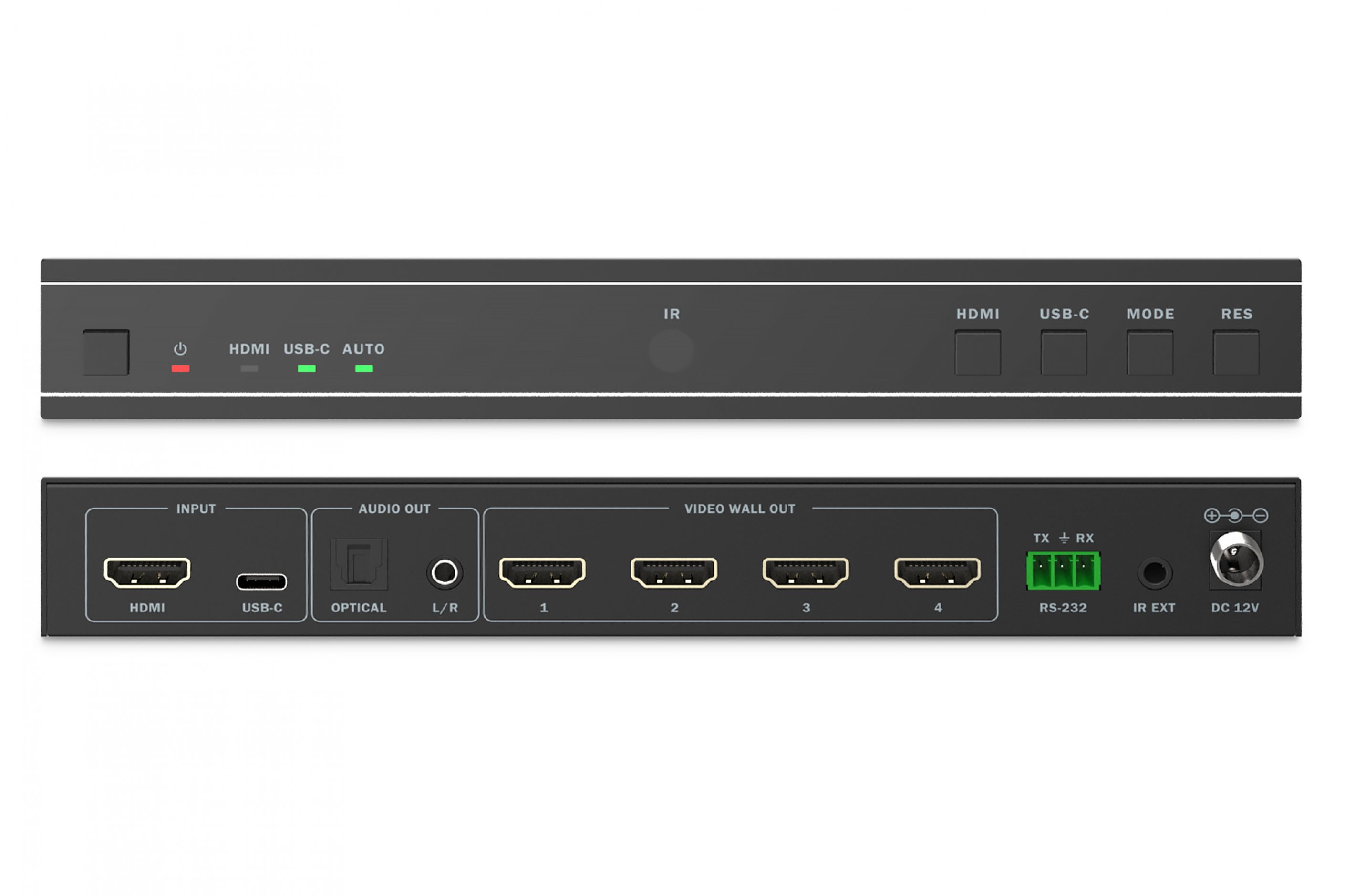 HDMI Video Wall Controller, 4 Displays 4K/30Hz, HDMI, USB-C, Black
