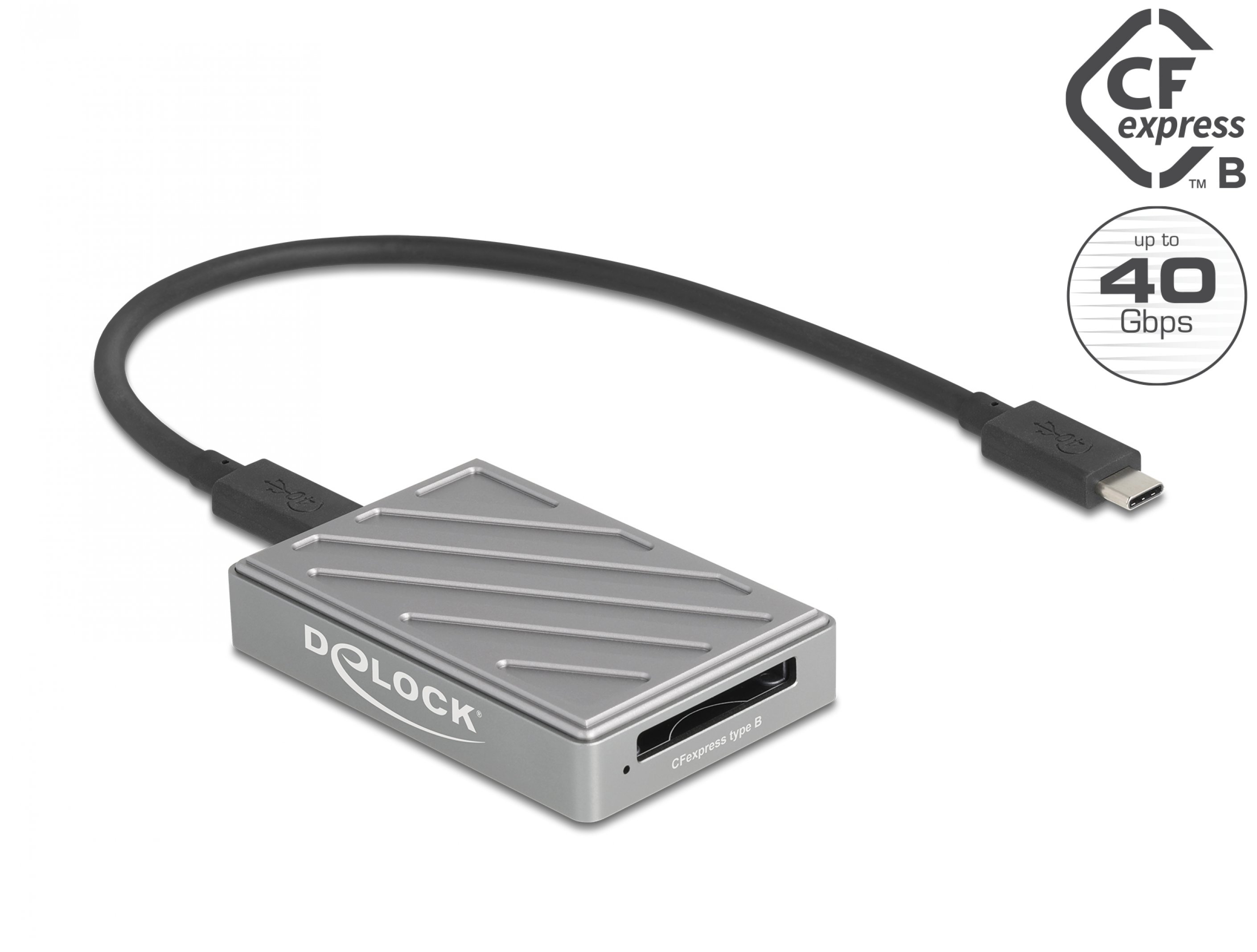 Descriere Cititor de carduri USB Type C 40 Gbps pentru carduri de memorie CFexpress tip B, Delock 91021