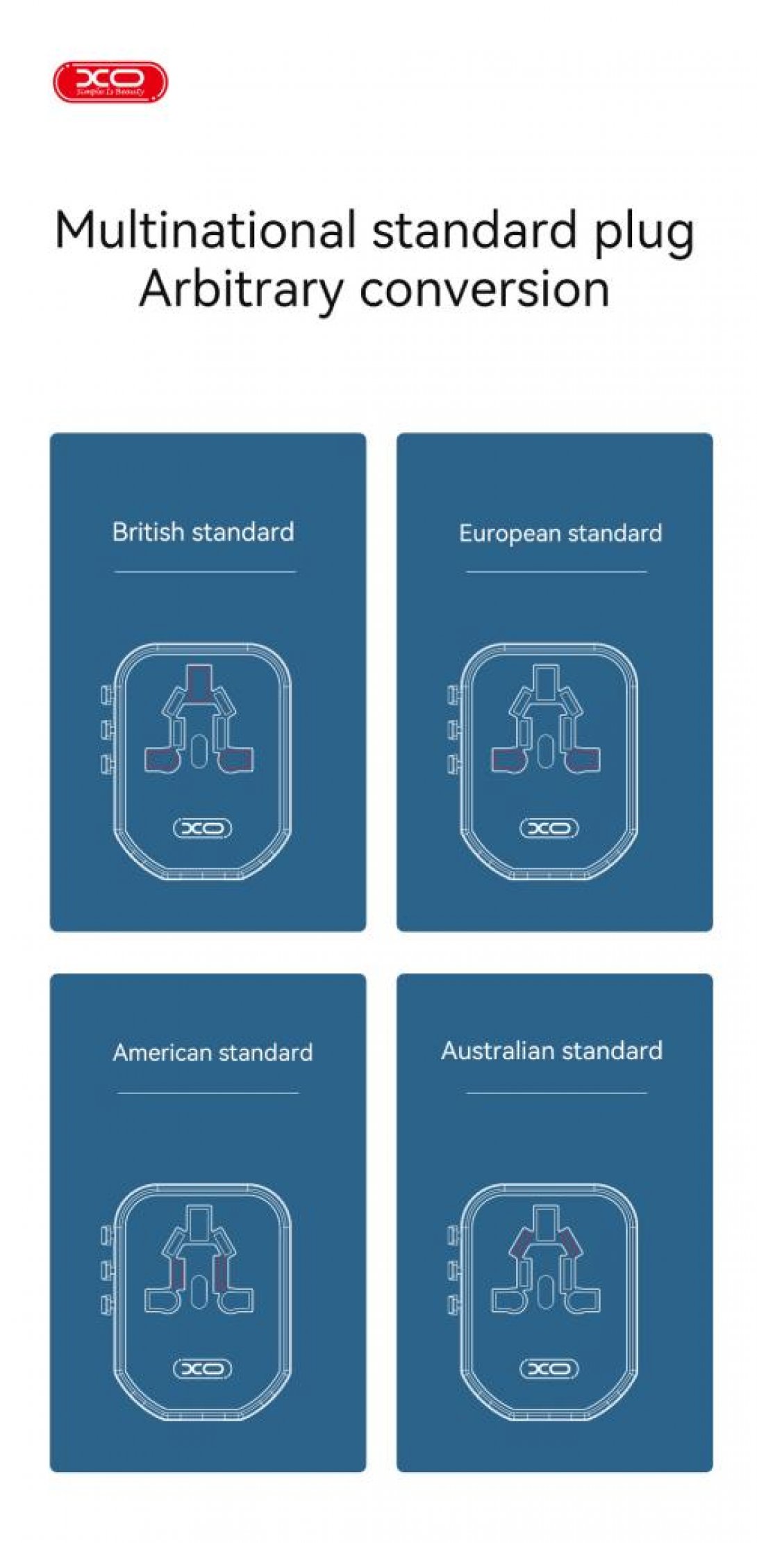 Caracteristici generale Adaptor universal 20W + 2 x USB-A + USB-C Negru, XO WL13