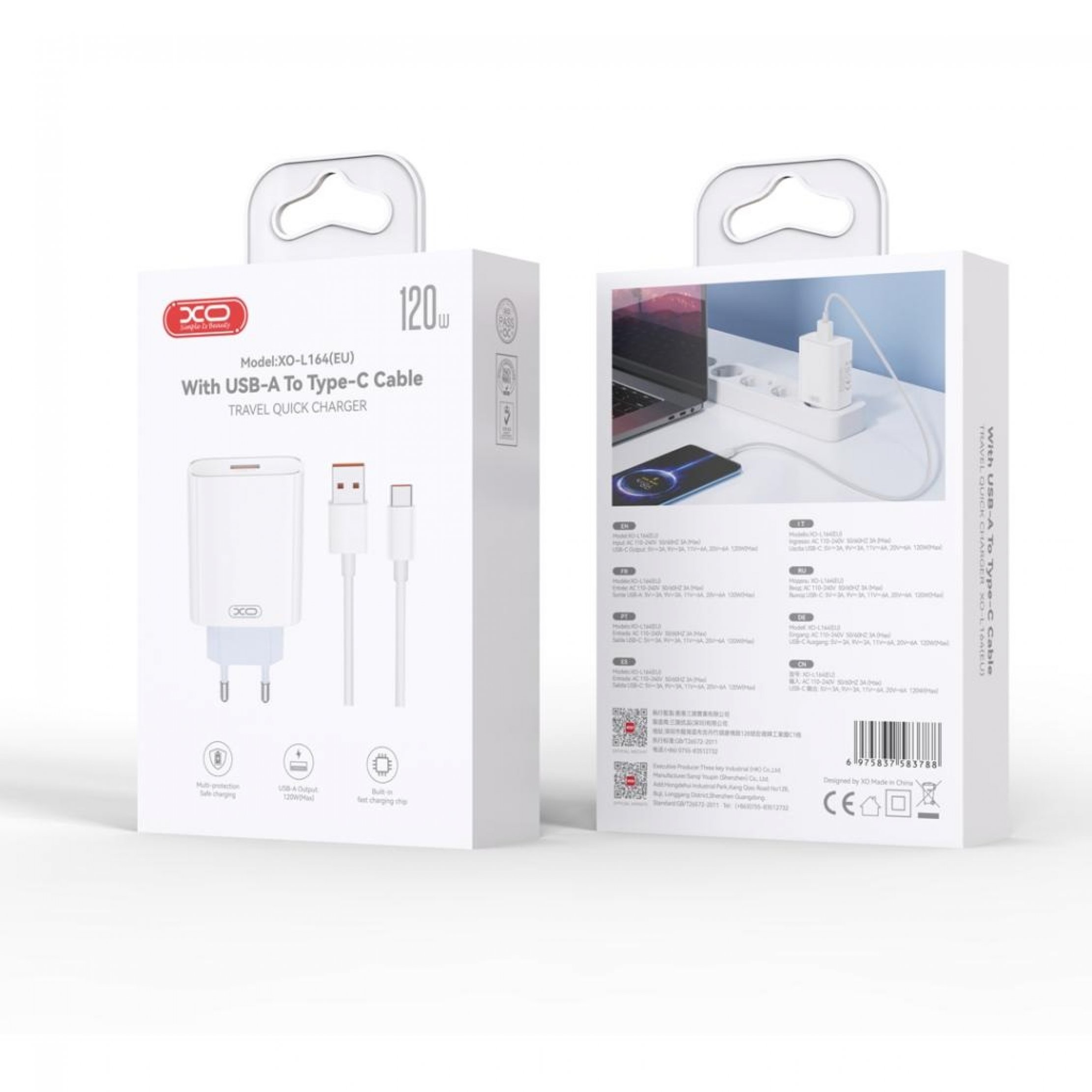Caracteristici generale Incarcator priza USB-A 120W + cablu USB A-C Alb, XO L164
