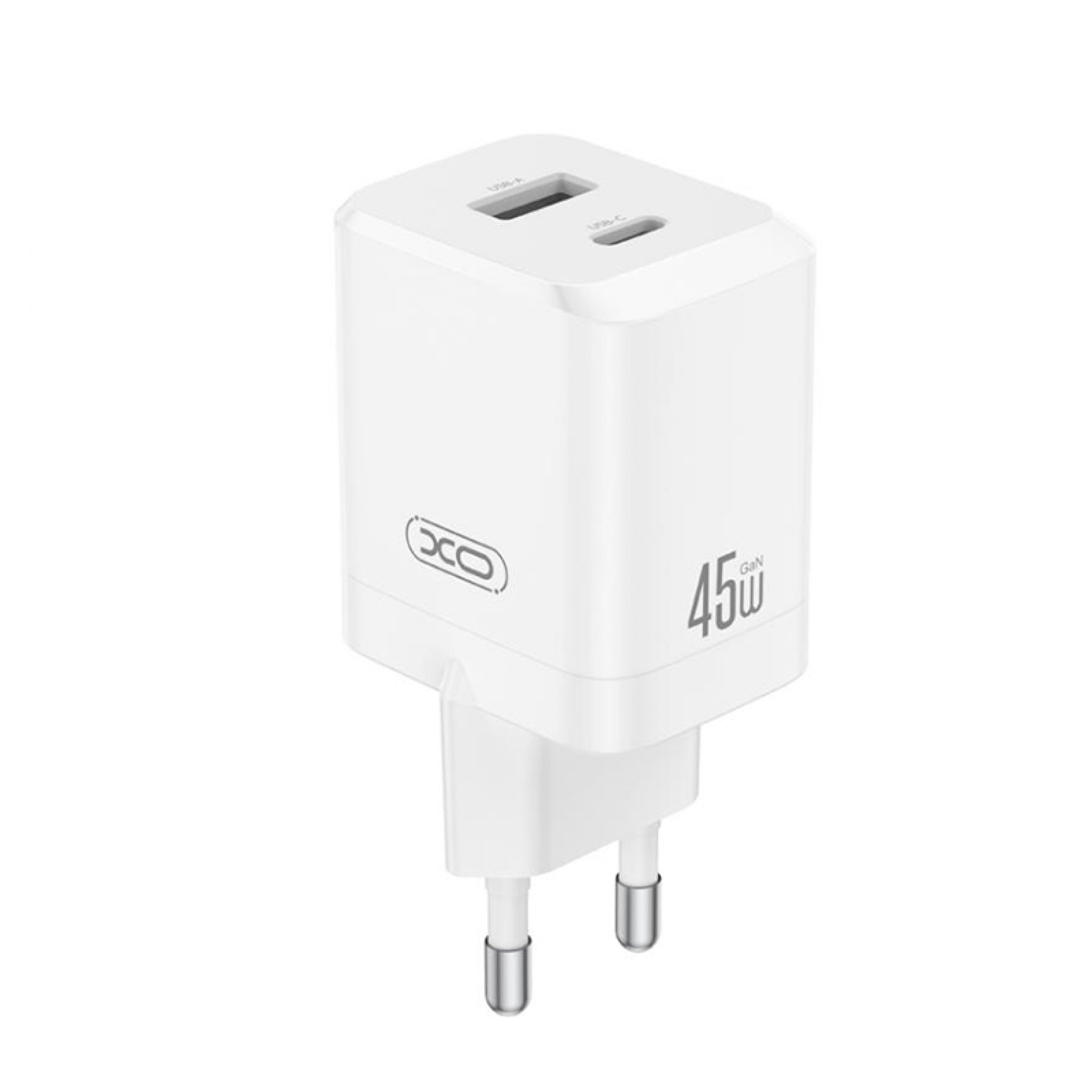 Descriere Incarcator priza USB-A + USB-C 45W GaN Nitride Alb, XO CE36