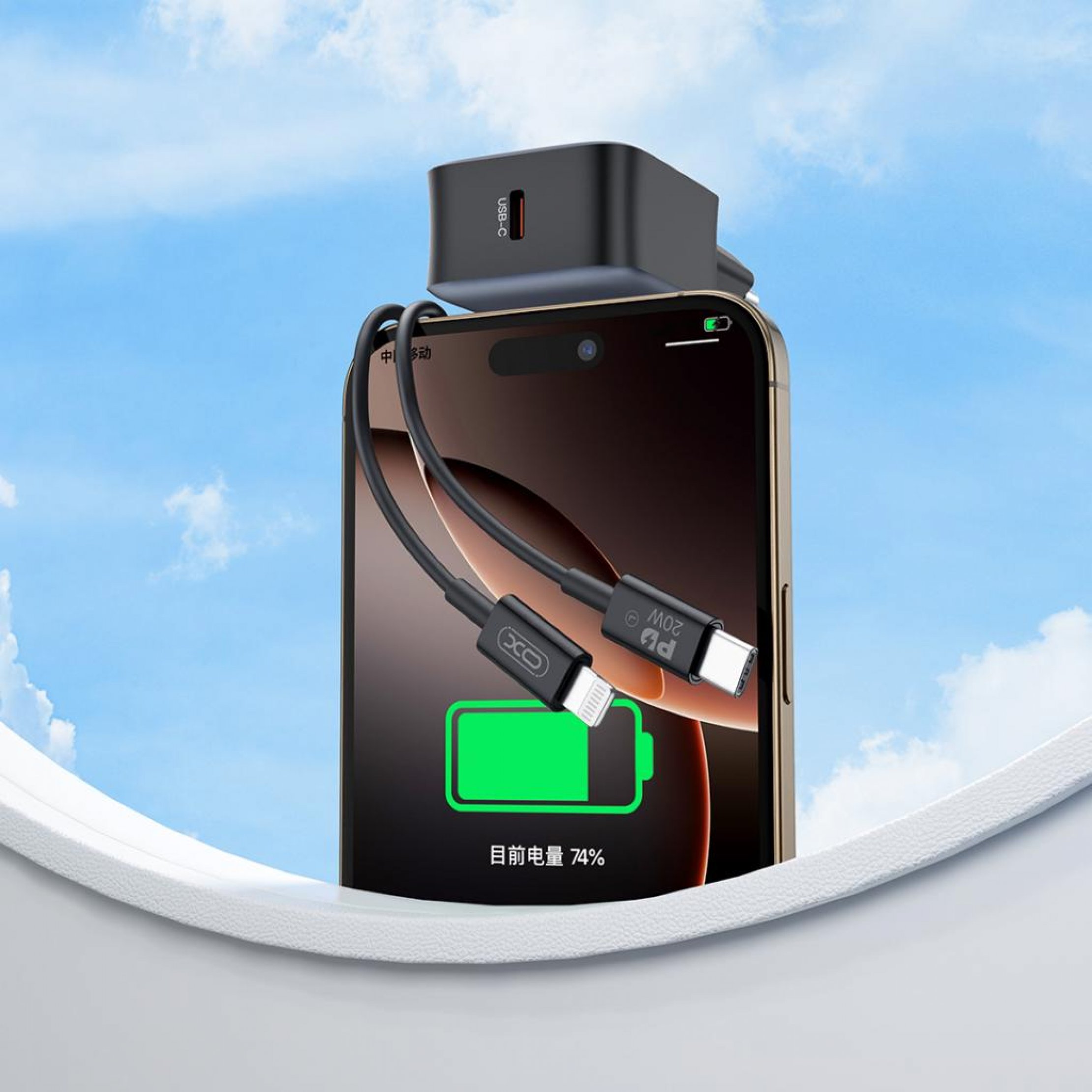 Descriere Incarcator priza USB-C 30W + cablu USB C-Lightning Negru, XO L155
