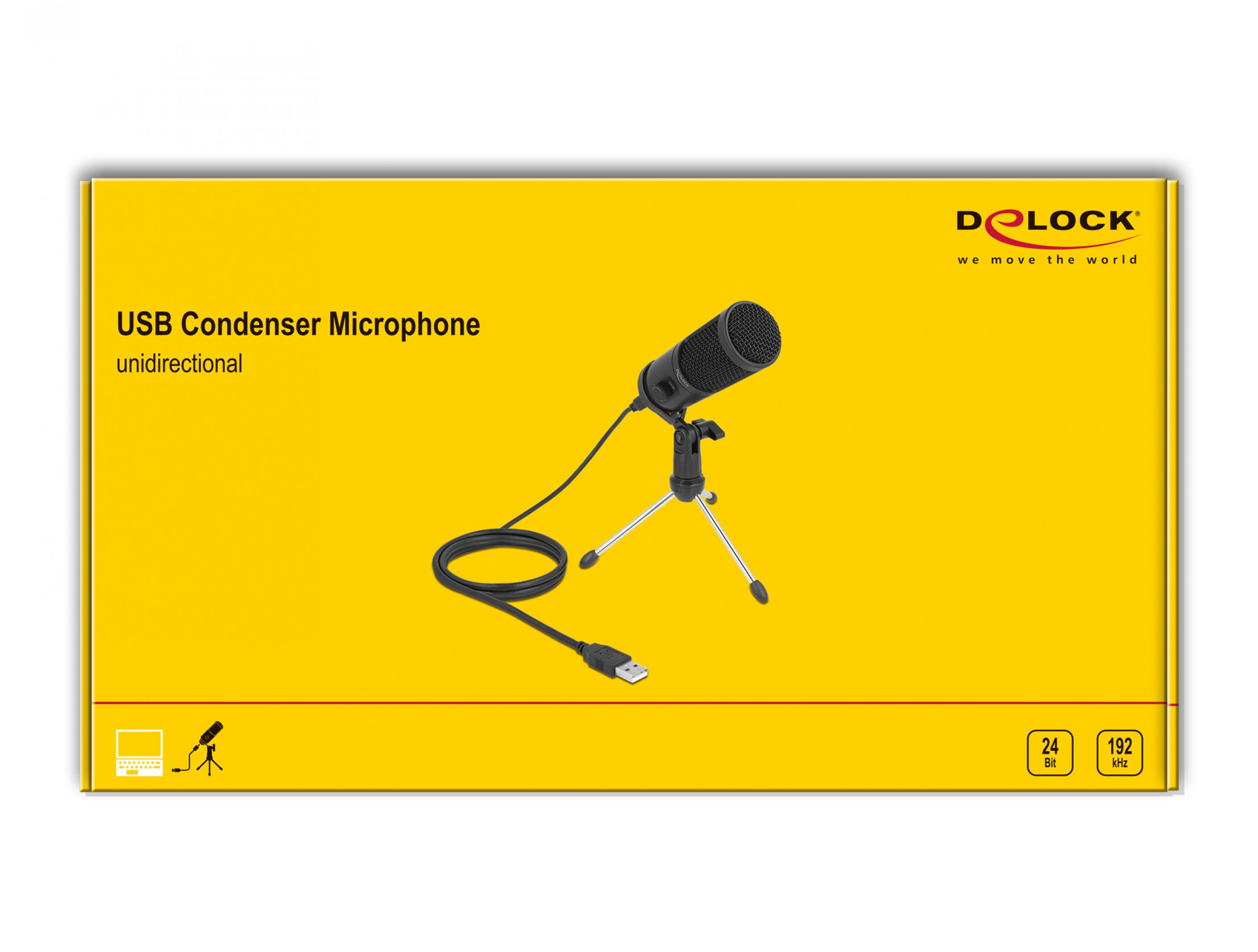 Descriere Microfon USB Condenser cu stand 24 Bit/192 kHz, Delock 66832
