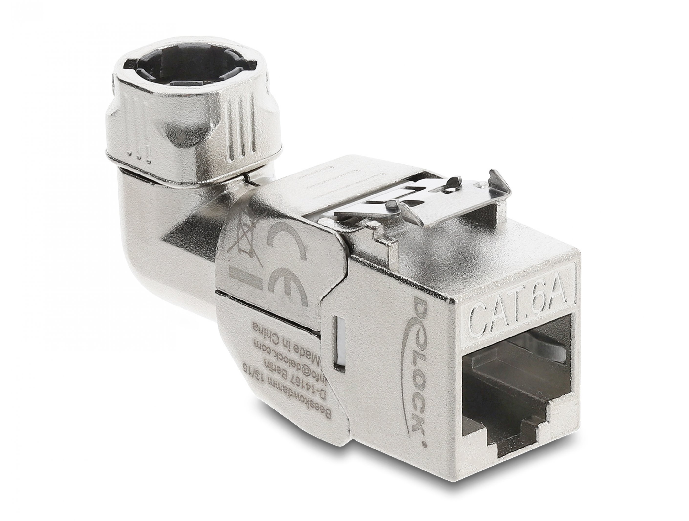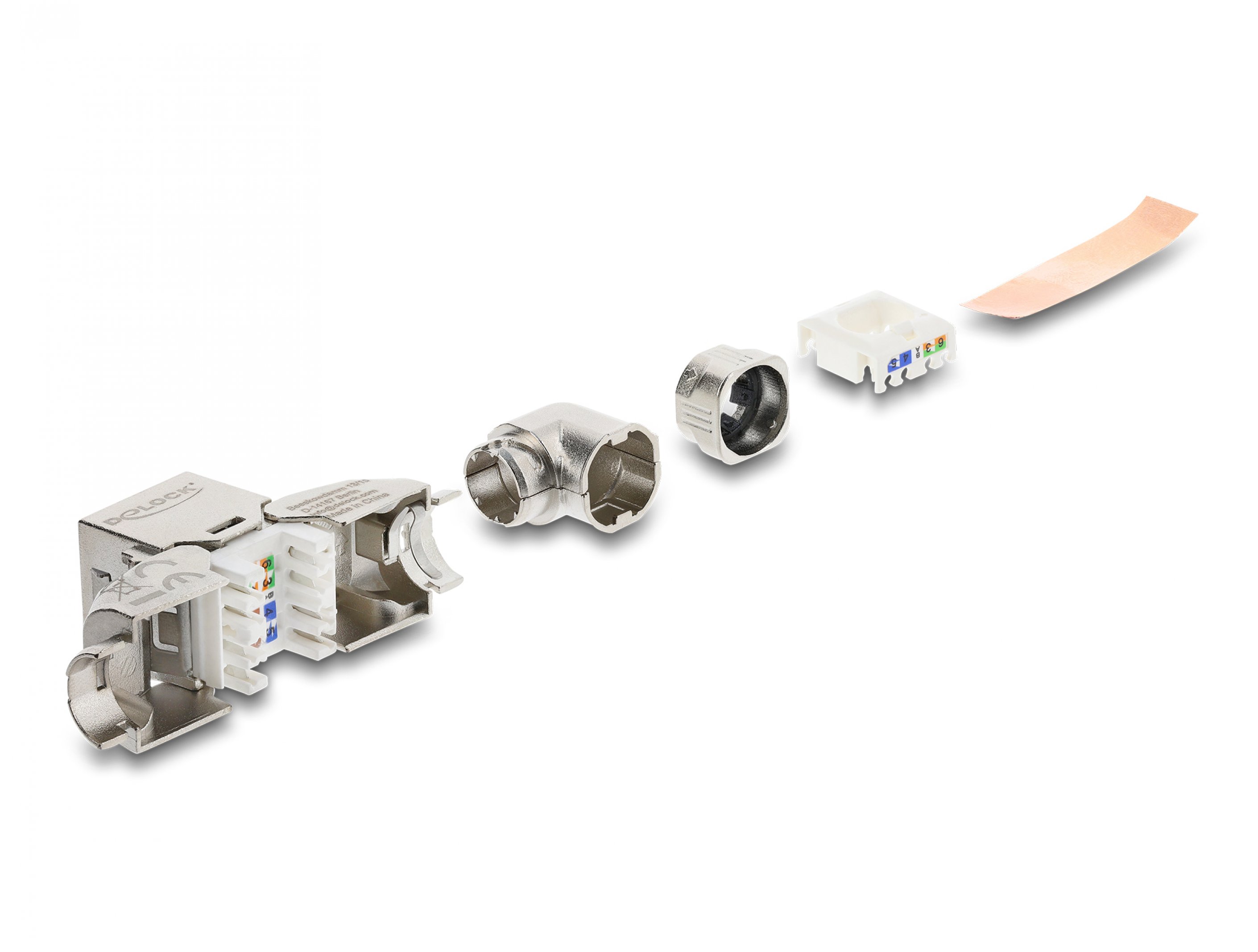 Descriere Keystone RJ45 la LSA Cat.6A metal latch tool-free unghi 90 grade ecranat, Delock 90797