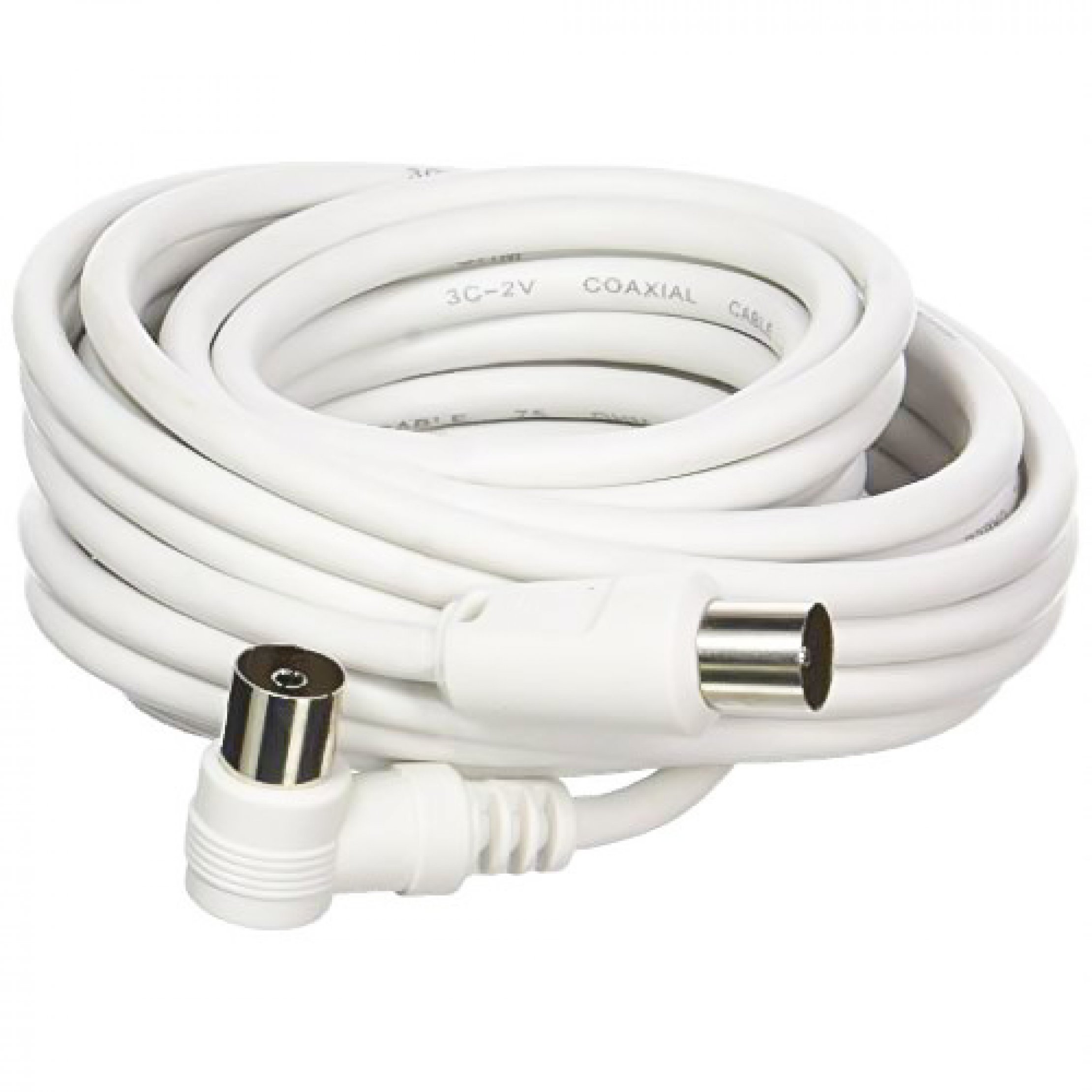 Cablu coaxial 3C2VCablu de conectare pentru abonat pentru conectarea televizorului la priza de antenaConectori IEC tata-mamaEcranare de calitateConector inclinat la 90 gradeLungime 20 m