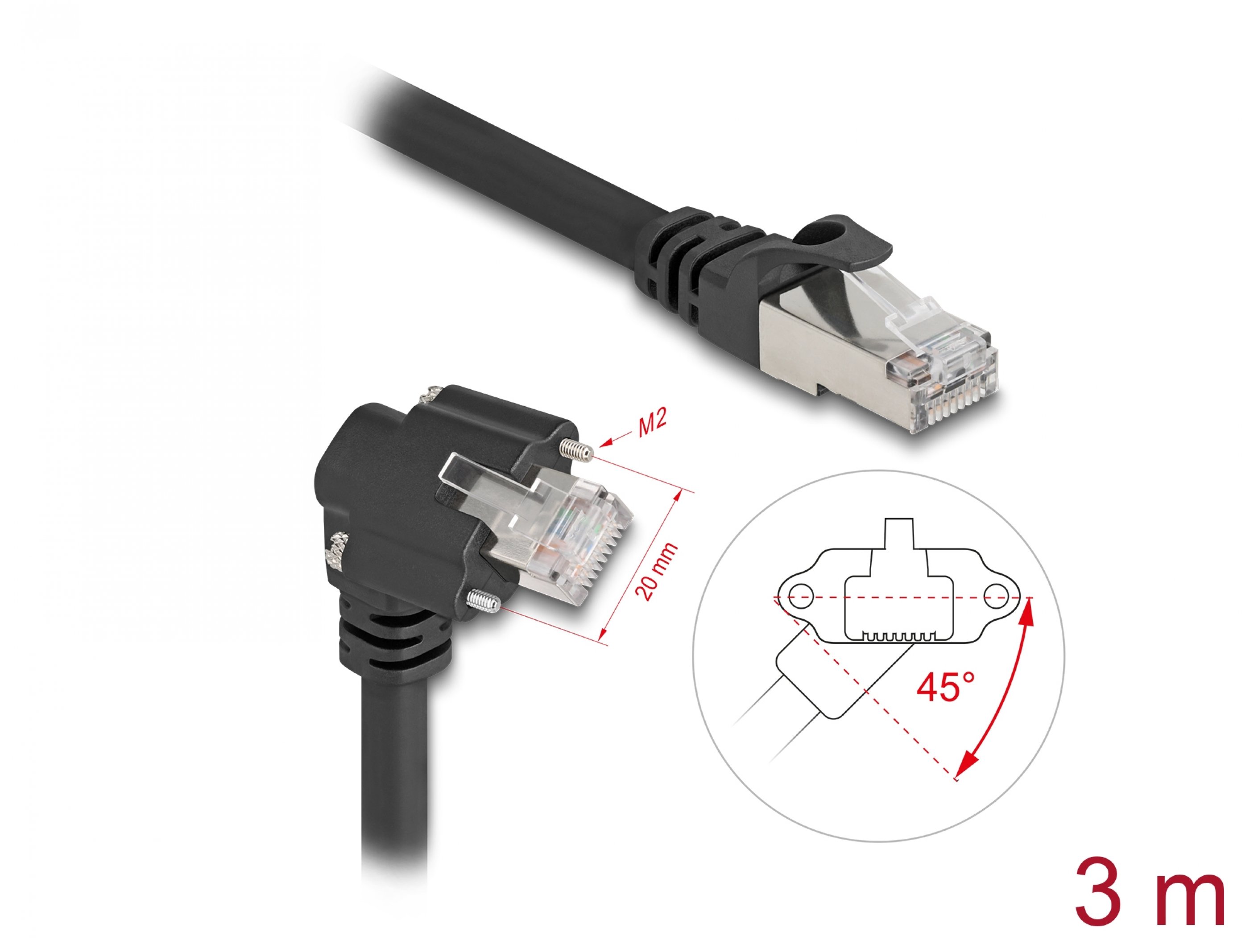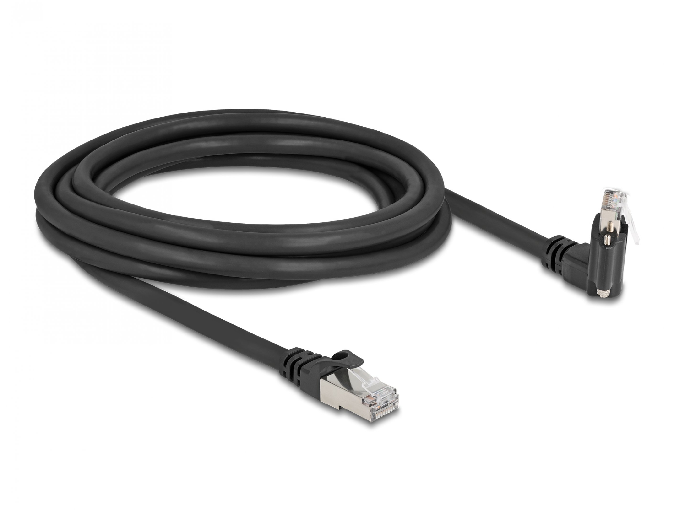 Descriere Cablu de retea RJ45 Cat.6 SFTP drept/unghi cu suruburi 3m Negru, Delock 80919