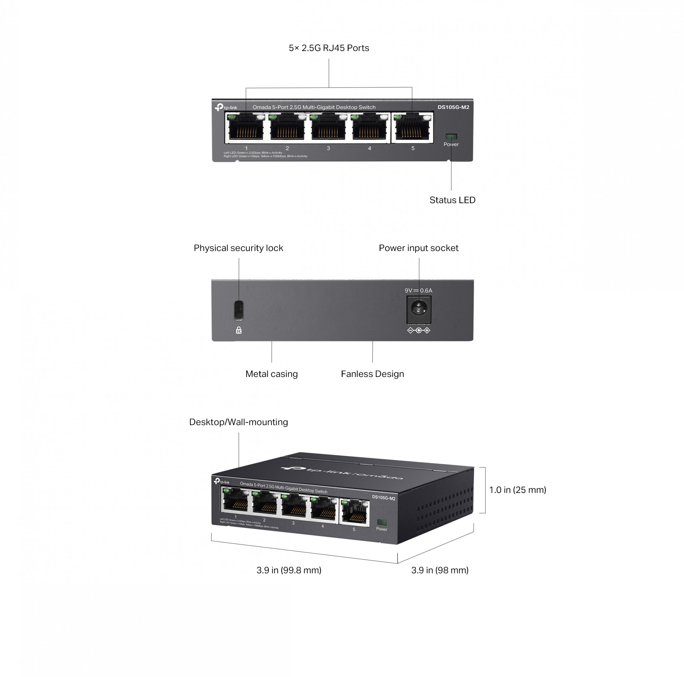 Descriere Switch 5 porturi 2.5G Unmanaged Omada, TP-LINK DS105G-M2